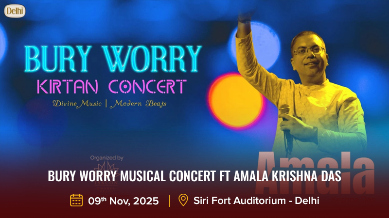 All ticket donations will support ISKCON Dwarka. An IIT alumnus and acclaimed devotional artist, Amala Krishna Das has performed at IITs, IIMs, and global platforms like the Global Youth Summit. With over 2 million views online, his fusion of soulful mantra music and spiritual storytelling captivates audiences everywhere. His concerts go beyond performance—offering a journey through music, reflection, and inner connection.