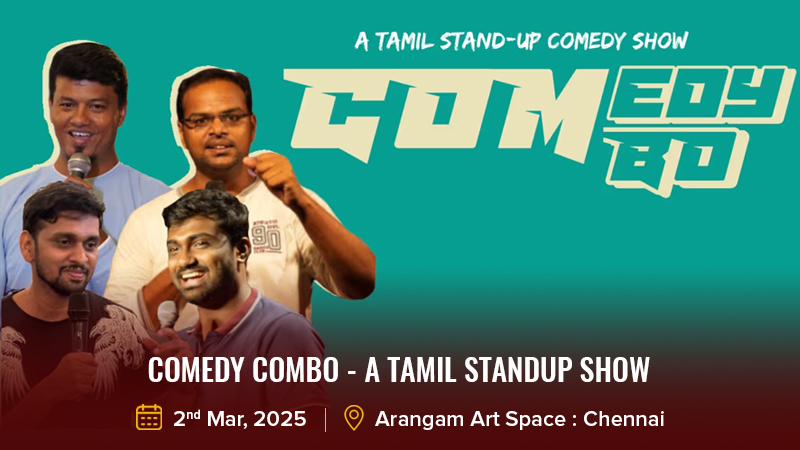 Madras Comedy Circuit presents Comedy Combo—a Tamil stand-up show featuring some of Chennai’s finest comedians: Prabhu, Sai Anand, Naveen, Pradeep, Divyanand, and Sundar. Get ready for a night of nonstop laughter!