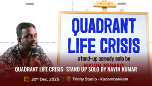 Navin Kumar is one of India’s most viral English comics, amassing over 20 million views across YouTube and Instagram. Recently celebrated for his Quadrant Videos, he hilariously breaks down the randomness of life through sharp wit and clever storytelling. Fresh from the Edinburgh Fringe Festival and a sold-out show in London, “The Quadrant Life Crisis” is now coming home for his Indian fans. The show is for everyone—and honestly, there’s only so much he can say about himself in third person. So just come!