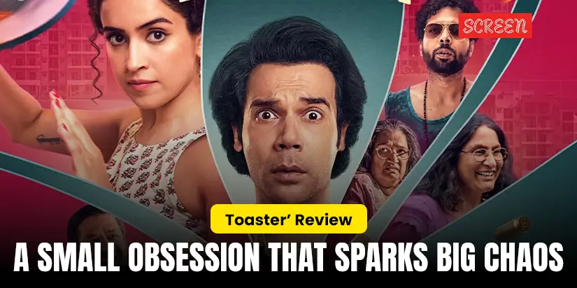 The plot kicks off with a dilemma every Indian household understands. Ramakant (Rajkummar Rao) treats his bank balance like a holy secret. So, when his wife Shilpa (Sanya Malhotra) forces him to buy a premium, “premium-priced” toaster for a friend’s wedding, he’s practically in mourning.